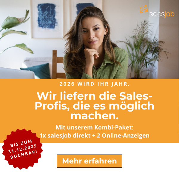 Dank der umfassenden Erfahrung unserer Mitarbeiter ist salesjob seit mehr als 20 Jahren erfolgreich am Markt. Täglich wächst die Zahl der Besucher, die auf salesjob.de nach Vertriebsjobs recherchieren und sich über die neuesten Entwicklungen in ihrem Tätigkeitsbereich informieren für eine erfolgreiche Karriere im Vertrieb. Unternehmen erreichen so ganz gezielt qualifizierte Sales-Profis.